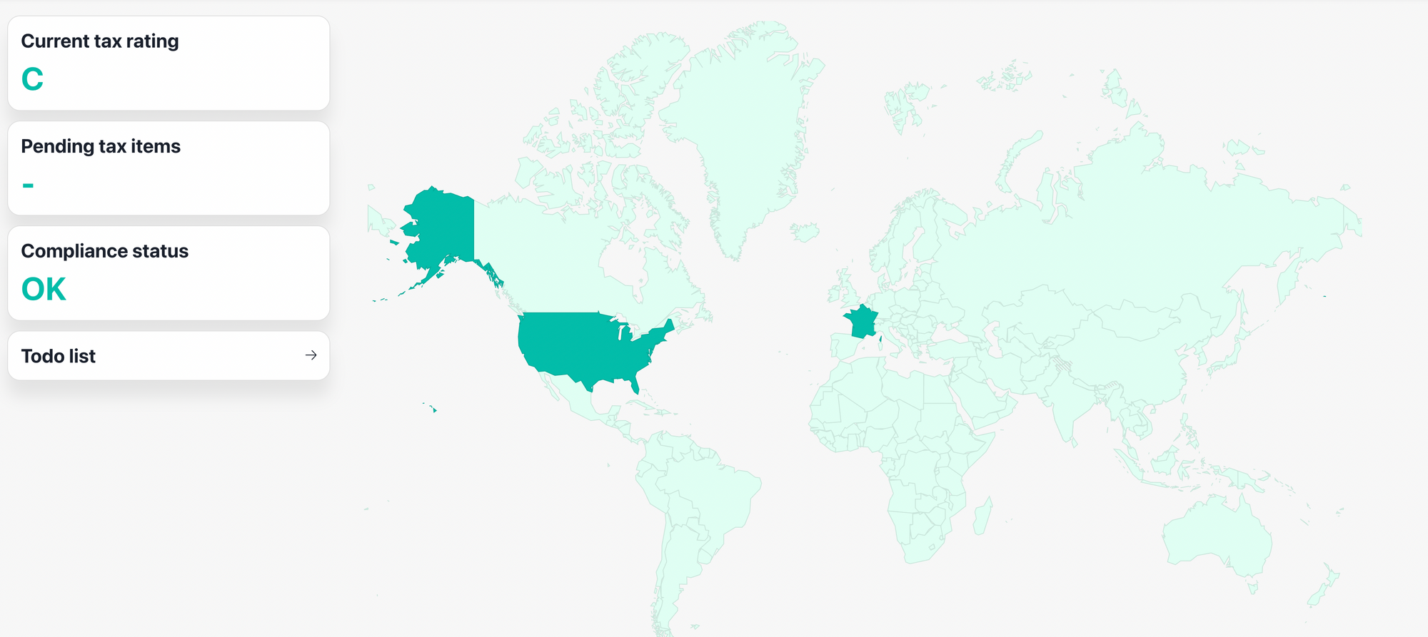 Once you approve your "Global remote setup" package, this will help you check at a glance what is your current status and what is happening during your trip. You have an overview of your global taxation and international obligations while working from anywhere.