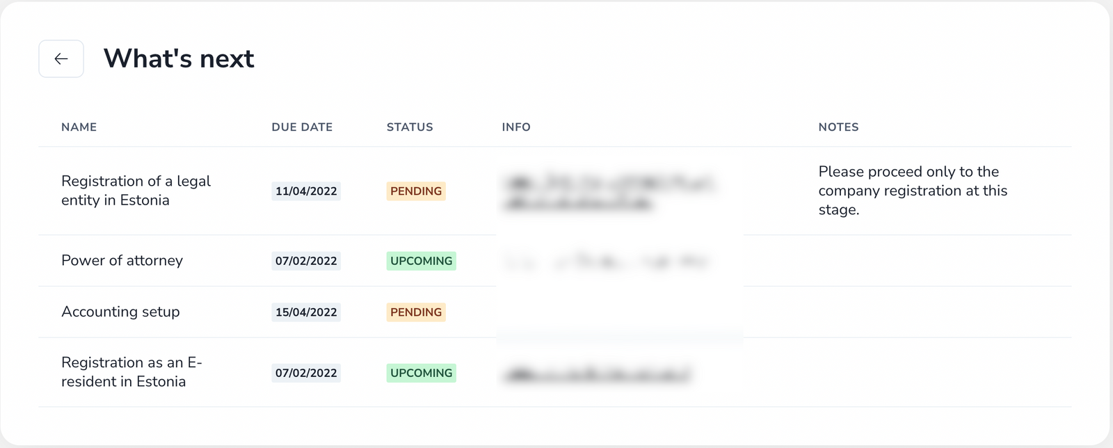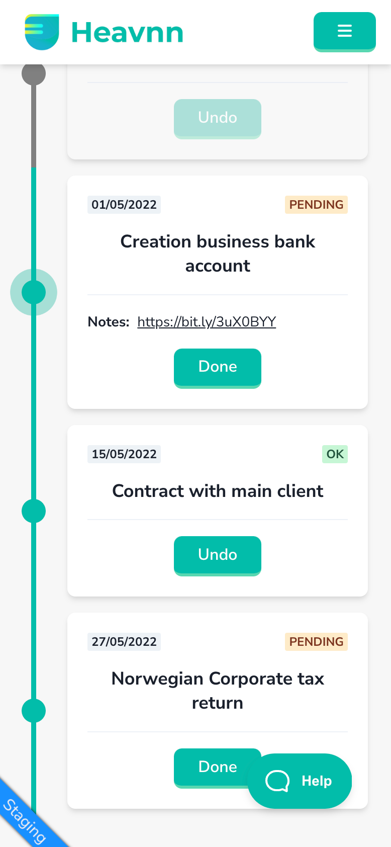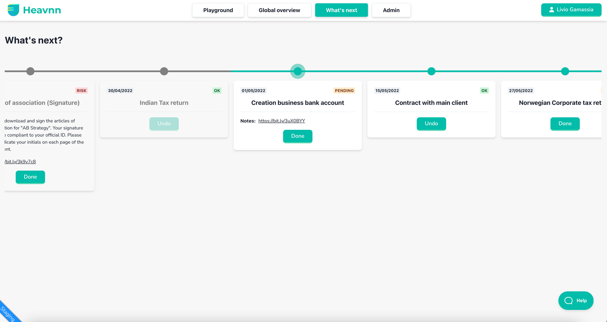 As a reminder, this section is a semi-automated (handcrafted) list of chronological items to do in order to get your setup configured correctly. In other words, you can see it as the place where Heavnn team communicates with you while taking care of all the paperwork. Here is how it looked before: